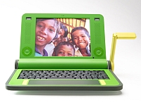 Now a cute little green thing, one with a hand crank and smiling kids on the front? That's media friendly. Distributing them to children worldwide, with images of kids' faces lighting up, both physically and with the possibilities of technology? Priceless.