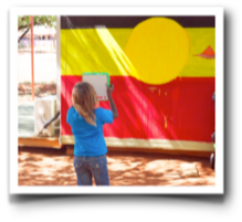 Over to the early years class we went next, showing the kids how to 'make' the camera. These kids actually chose mostly to take shots of the artwork (Goannas, snake, the red, black, and gold flag) painted around the school. We then showed them how to insert images into 'Write' and begin to make a sequence to add captions too - giving them the power to so easily create & share their world.