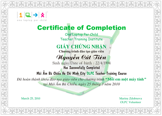 From that chance meeting, Marina had the dream to start an OLPC deployment in Vietnam, and she is succeeding! She is introducing XO laptops as learning tools for children at the Ba Chieu in Ho Chi Minh City, Vietnam, and creating a community of supporters of XO and Sugar users.