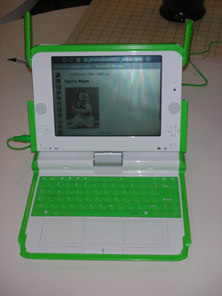 Christopher Blizzard published the first photo on his blog a few hours ago and they were quickly followed by a slew of photos on the OLPC wiki. The simple words that accompanied Chistopher's post seem rather muted