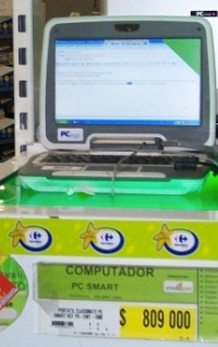The PCsmart build of the Intel Classmate is being sold at the big box stores in Colombia. Carrefour and Exito are just a few of the stores, but actually that is where the movers and shakers within Colombia shop in a suburban American mall like experience. The $323 retail price is of course higher than the wholesale price.