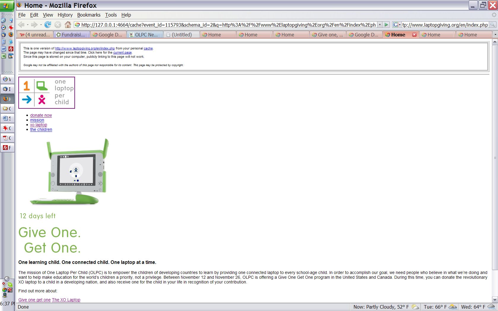 Well Trevyn, I am not going crazy, I know I saw it at 12 days. In fact, here is my Google Desktop cache that shows OLPC displaying 12 days: /websites/olpcnews.com/images/12-days-left.jpg