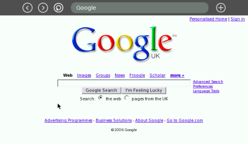 Compared to this, Sugar is plain simple. No 3D effects, the UI is plain 2D, with strong contrasted colors. Icons and buttons are also very simple, a white circle with a symbol in the middle. For example the browser looks extremely simple: