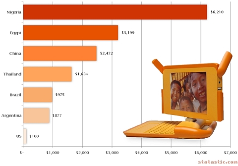$100 in Nigeria is the equal to nearly two months income. To give Americans a sense of how much $100 is to the average Nigerian, imagine sending your 8 year old to school with a $6,000 laptop.You couldn't be more right, Statatic. I know that I, for one, will be looking for an eBay OLPC the day they ship, and I know I'll not be disappointed.Now imagine living in a country with an epidemic of corruption, in a shanty with no electricity or running water. If laptops were selling for $300 in developed nations, it would provide a strong, and unfortunate, incentive for Nigerian parents to sell their children’s laptops.