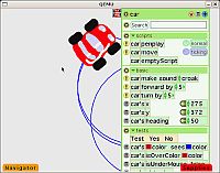 They need Activities that aren't dependent on a specific hardware setup, but will run on any "XO compatible" laptop. In other words, I think teachers need HyperCard. Or the modern equivalent thereof. And I think that the thing that comes closest to that is Squeak / eToys.