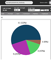 The main idea of the SocialCalc is to include features that enable children to use features of Spreadsheet activities. Tabulation feature enables us to enter data in a tabular format and edit it. The activity facilitates sorting of data, comments to increase understanding, clipboard functions, etc. SocialCalc supports graphing features.