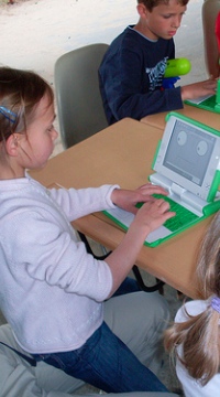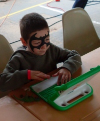 The small (grades K-2) and middle (grades 3-5) section principals each came by with some teachers and expressed great interest and took photos. They preferred the XOs to the netbooks with the exception of the Dell Latitude 2100 education netbook, they really liked the tattletale LED bar, the spine for putting a student's name in, the anti-spill "legs", the large screen.