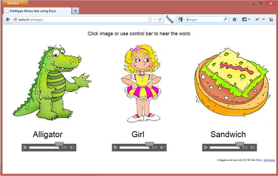 Let's start with a very simple HTML page with images and sounds coming from the Art4Apps library. Run the sample.