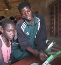 Henry Meyers introduced the One Laptop Per Child XO laptops at the first Lubuto Library in February.