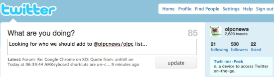 In fact, we've even created our own OLPC Twitter List of all those that are key to XO laptop development and usage expansion. But are we missing someone?