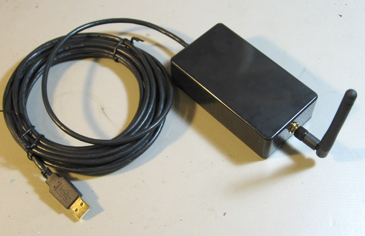 The Active Antenna is still in development and not available for outside testing or deployments. It is a standalone version of the wireless mesh network interface used in the XO laptop. It connects to a host or power source through a 5m (16ft) USB cable. As a mesh networking interface, it both serves as network interface for any host connected through USB and as a repeater node in the mesh. When the active antenna is ready for deployment, two or three Antennas can be used with each School server, one may be connected to an XO or other laptop to allow mesh networking, or they may simply be connected to a wall brick providing power.