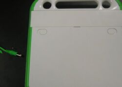 The Power Button is located in the bottom right-hand corner of the bezel surrounding the screen. Note that it takes approximately two minutes for the machine to boot. However, the green power LED should come on immediately. If, for some reason, you do not see text appear on the screen within 15 seconds, or if the machine does not power on at all, please see the #Bugs and or Known Issues Section at the end of this document. (Note that sometimes the power button gets caught under the bezel.)
