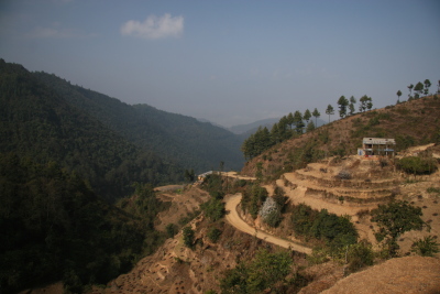 Bashuki School is located in the village of Lakuri Bhanjyang, situated high upon a hill ridge roughly 1 hours walk from the main road. There is a coarse gravel road leading to the school that is only accessible by motorcycle or a 4-wheel drive vehicle. Here is a view from the school roof down at the Kathmandu Valley.