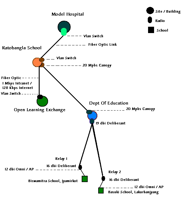 We are using Deliberant brand of radios for the point-to-point connection to the Department of Education. The radio has an effective bandwidth 8 Mbps. Since the radio will be transmitting at a distance of 4 km to the Department of Education located in the Kathmandu Valley, interference will be an issue.