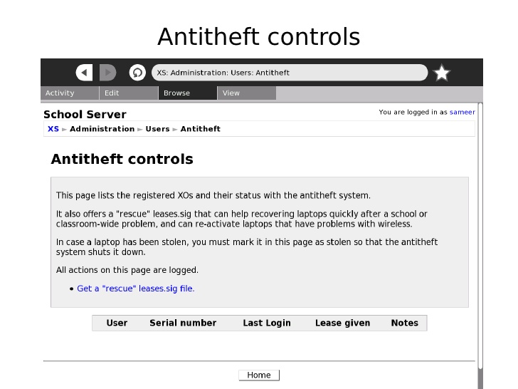 The XO School server - also referred to as XS - is a computer with a large hard disk and fast processor, with server software on it and provides the infrastructure required for the laptop to operate, in a cost-efficient manner (cf below). It provides mesh access points and Internet connectivity, library services, and an extension to the data storage provided locally on the laptop. It is both a hardware device, a collection of software services which may run on a variety of hardware, and a particular software implementation.
