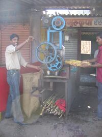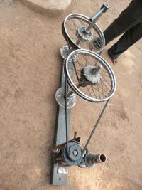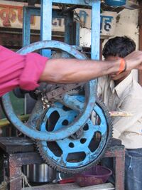 Other solutions to exploreTonga (Cart) WheelUse a Tonga wheel to increase the rpm ratio further. The Tonga wheel is a large wheel - much larger than the ones used in cars/motorcycles. See here to know what a Tonga is. The local Sugarcane juice machine |