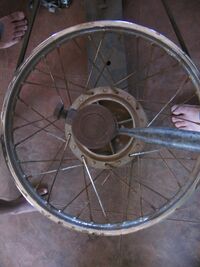 The large rim were also taken from local junkyard shops and are the rims of motorbikes.