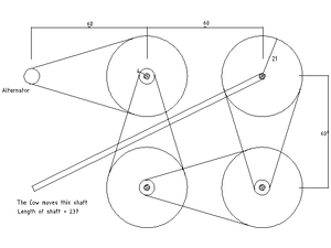 The pulleys and belts are taken from local junkyard shops and are commonly used in cars.