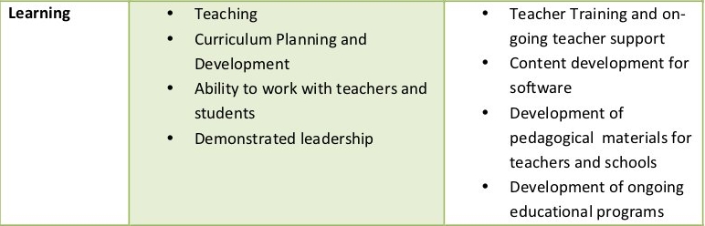 The following chart provides additional information on the responsibilities and required skills of the Core Team members: