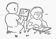 The original Dynabook was to be a book-sized electronic slate computer that a child could carry with them. The child would communicate with the slate using an object-oriented programming language and manipulate objects using a pen. Alan Kay developed this concept while he was working on the Smalltalk language and later created Squeak to implement Dynabook concepts on regular PCs.