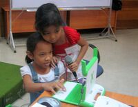 This happened during the last day of our stay in Lubang. The teachers were able to come up with short lesson plans using Speak, Camera, Write, pre-made Etoys lesson, and Browse. Mrs. Sanchez, a math teacher, was able to come up with a lesson on Symmetry based on the preloaded pictures in Browse and having the children also take pictures of symmetrical and asymmetrical objects in the classroom.