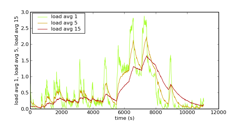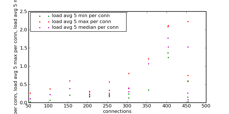 This shows max-median-min values for stable points along the way (3 minutes with the same number of connections).