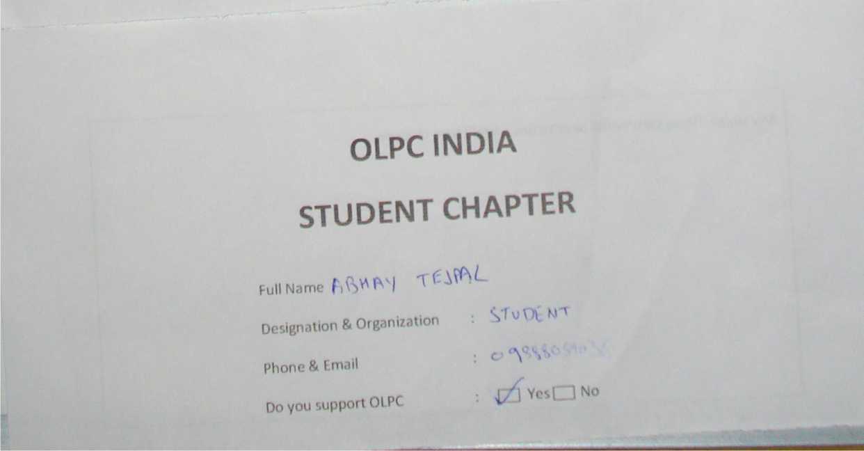 Membership form of OLPC India Student Chapter