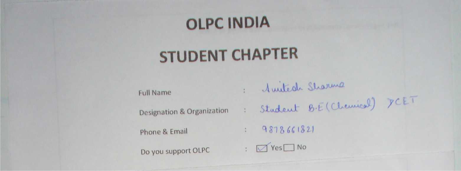 Membership form of OLPC India Student Chapter