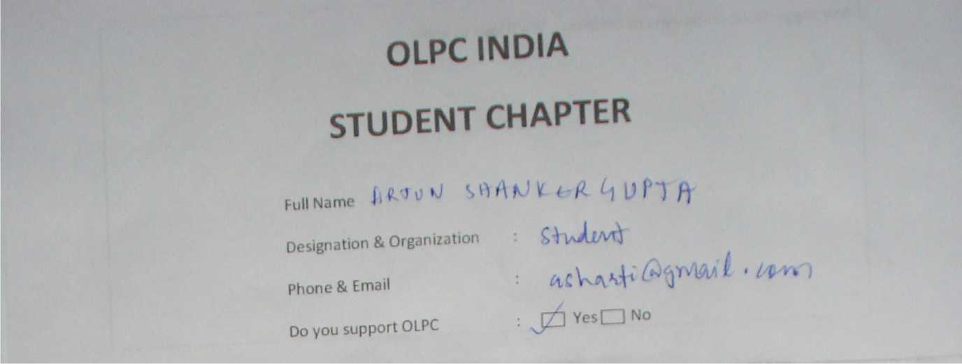 Membership form of OLPC India Student Chapter