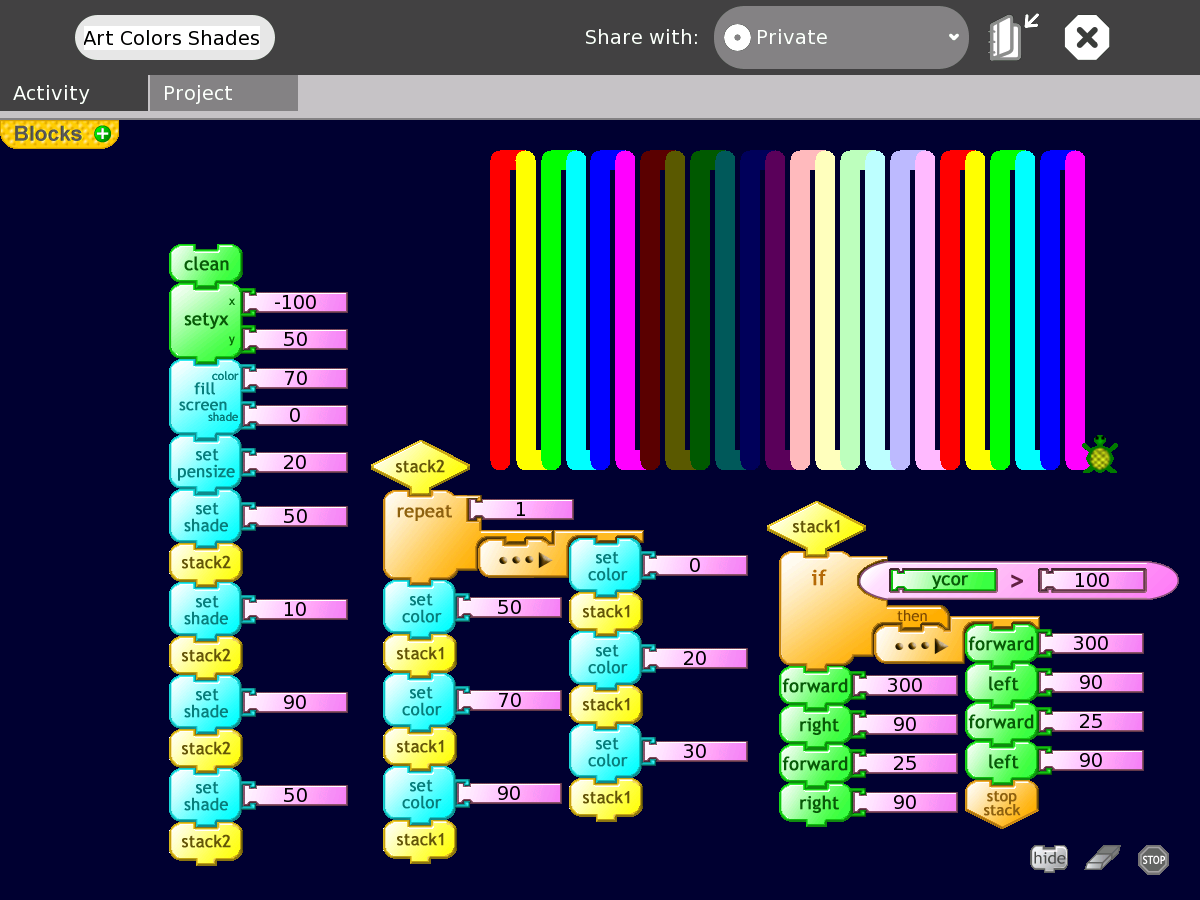 Shows the basic colors and shades.