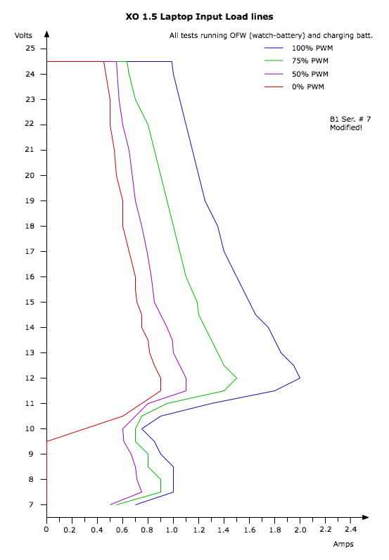DC power input load line of an XO-1.5 B1 prototype with the proposed power ECO. The PWM values indicated were approximated using voltages, not using the actual EC PWM output for control.