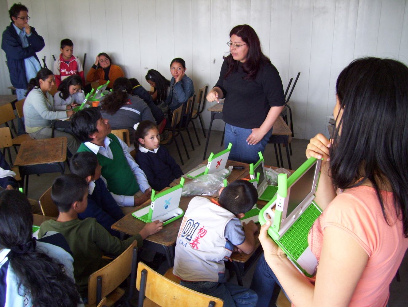 Los niños, sus padres y el grupo de trabajo de Colombia OLPC durante el desarrollo del taller en Altos de Cazucá
