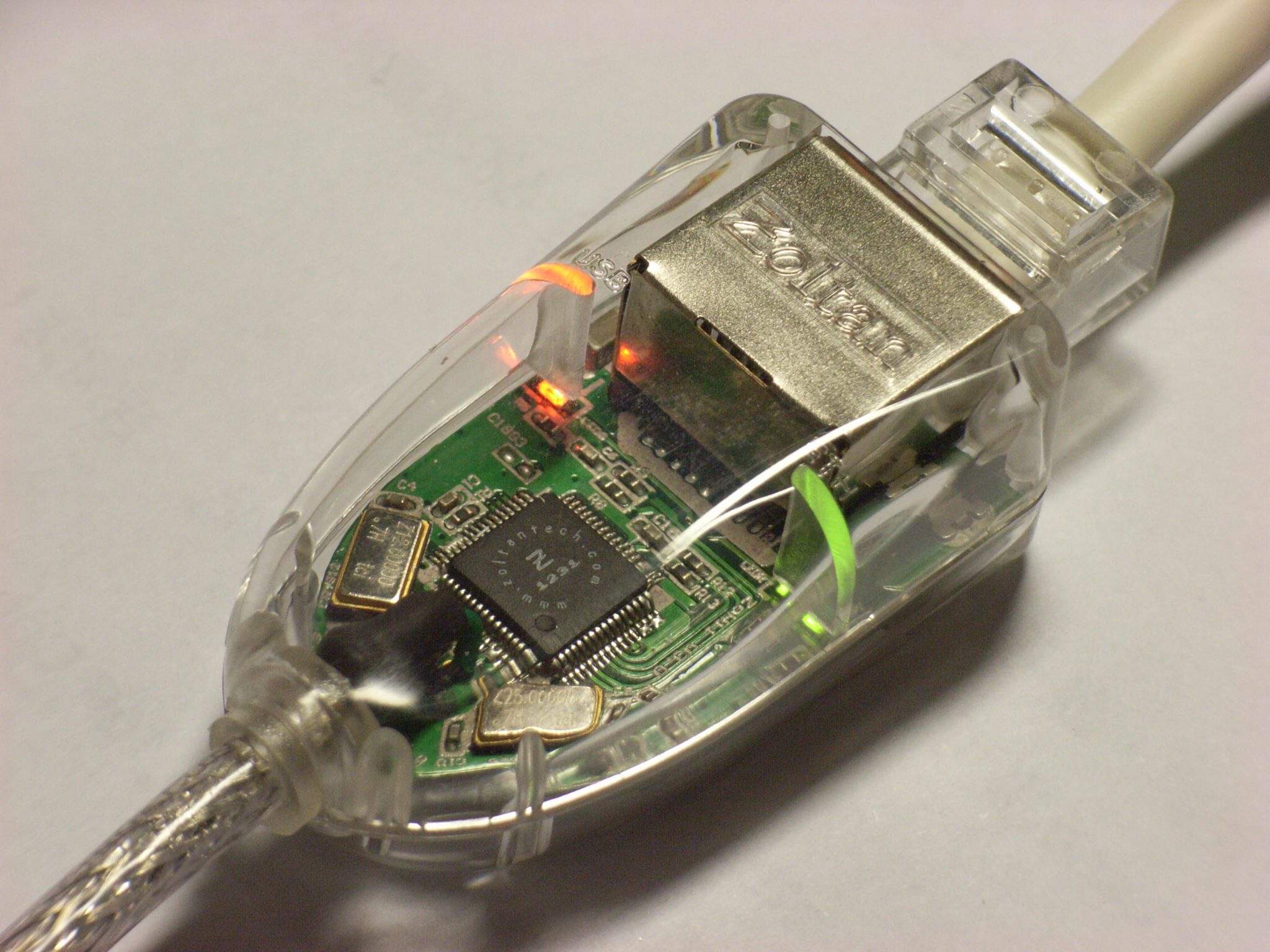 Hi Res picture of the clear-plastic ZoWii SUB2.0 to Ethernet adapter
