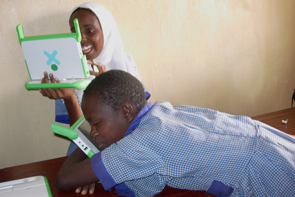Delirious girls record songs to their laptops at Vutakaka School in Takaungu, Kenya.