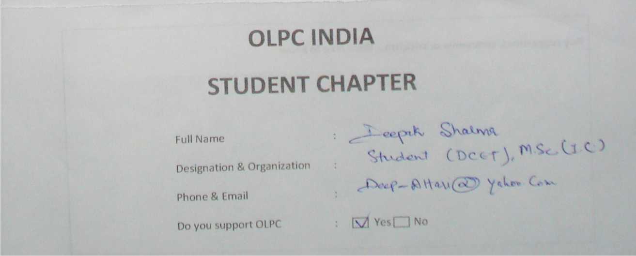 Membership form of OLPC India Student Chapter