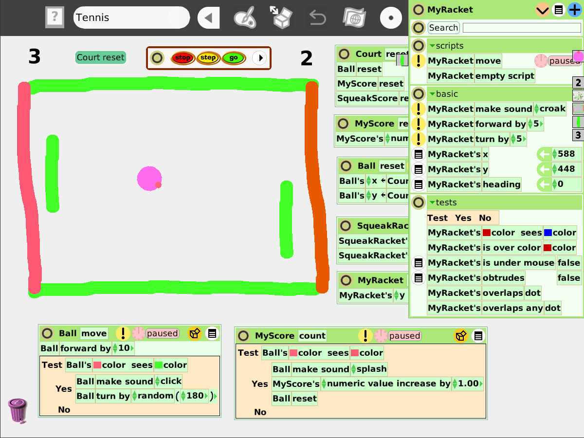 A tennis game project that was built by Etoys 2.2(#1796).