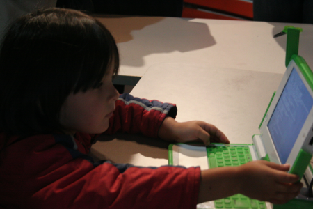 Fotos de niños probando la XO en Colombia