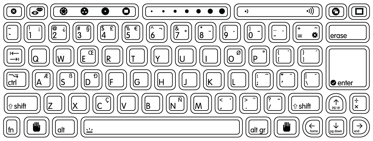 The laptops' standard keyboard layout.