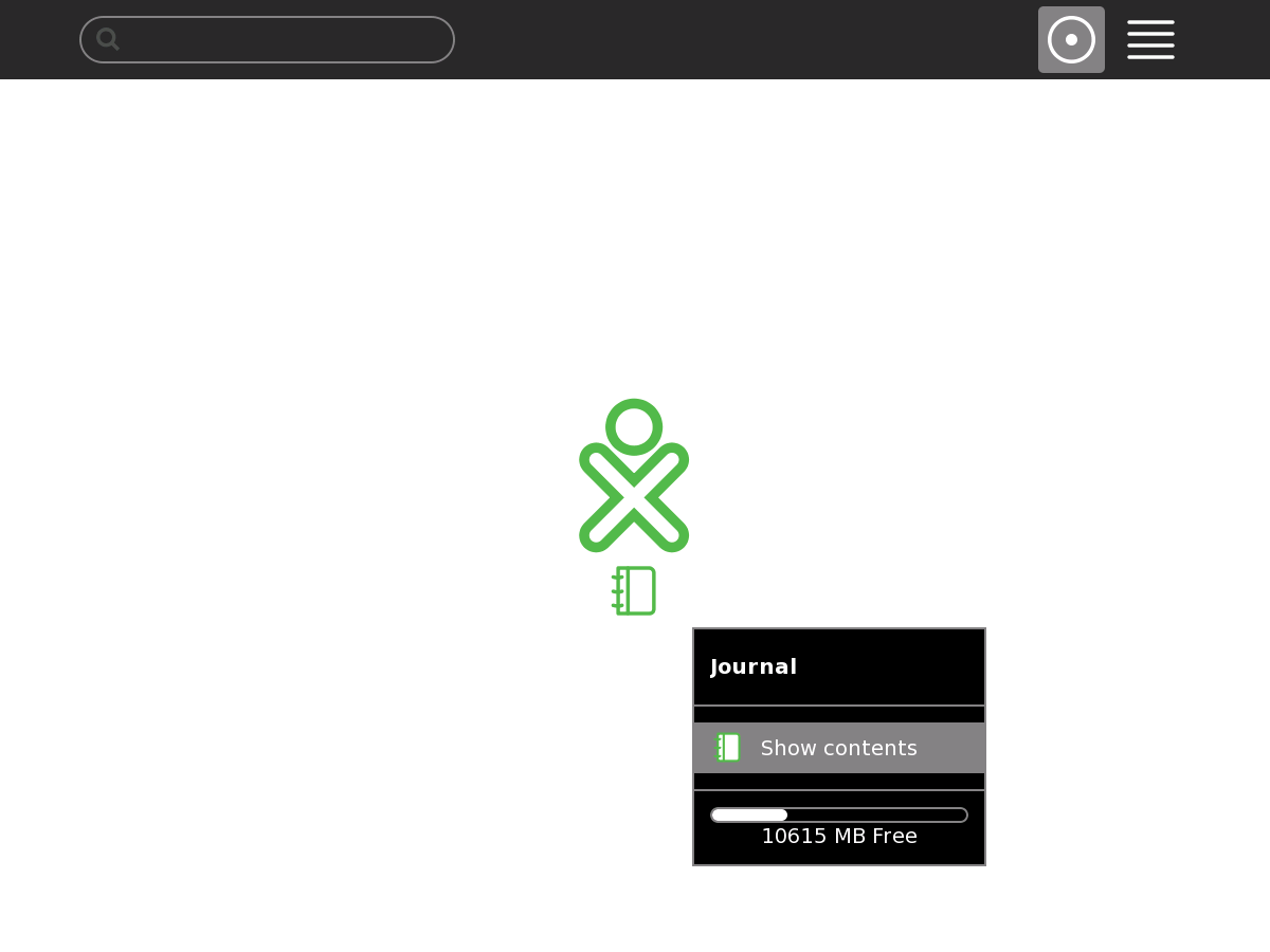 Screenshot of the Journal menu as shown in Sugar the home screen, featuring an XO logo in non-standard colors.