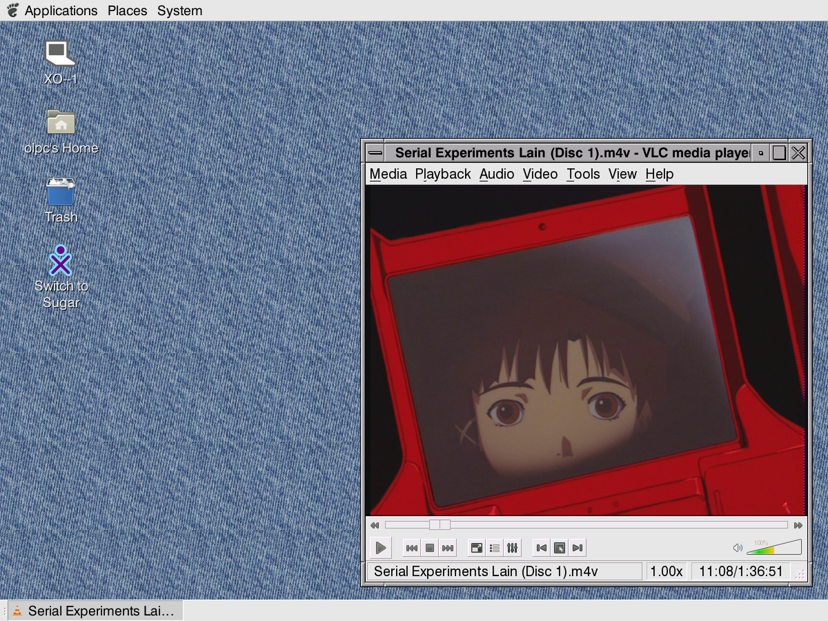 Screenshot of VLC running in GNOME on an XO. As far as I know, a screenshot from a single frame of a video for the purpose of illustrating a proof-of-concept (i.e.: that VLC works well on an XO) falls within fair use.