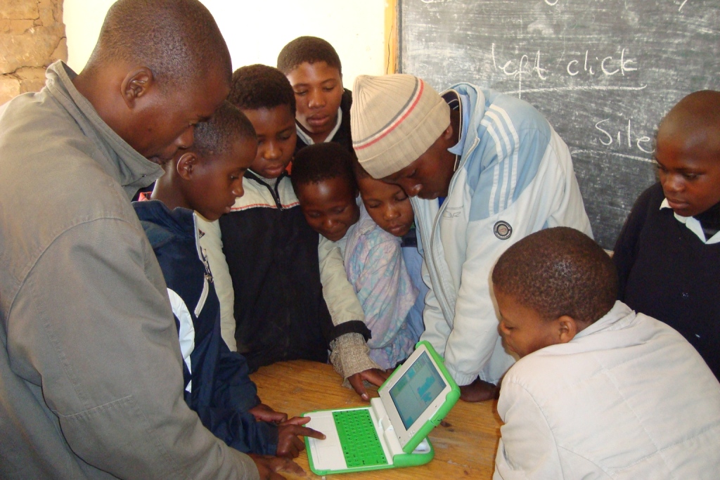 6th grade students at Ha Nohana Primary School using an XO laptop from OLPC