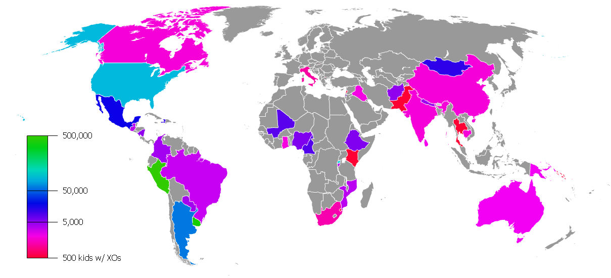 countries with 500 or more children and teachers using XOs