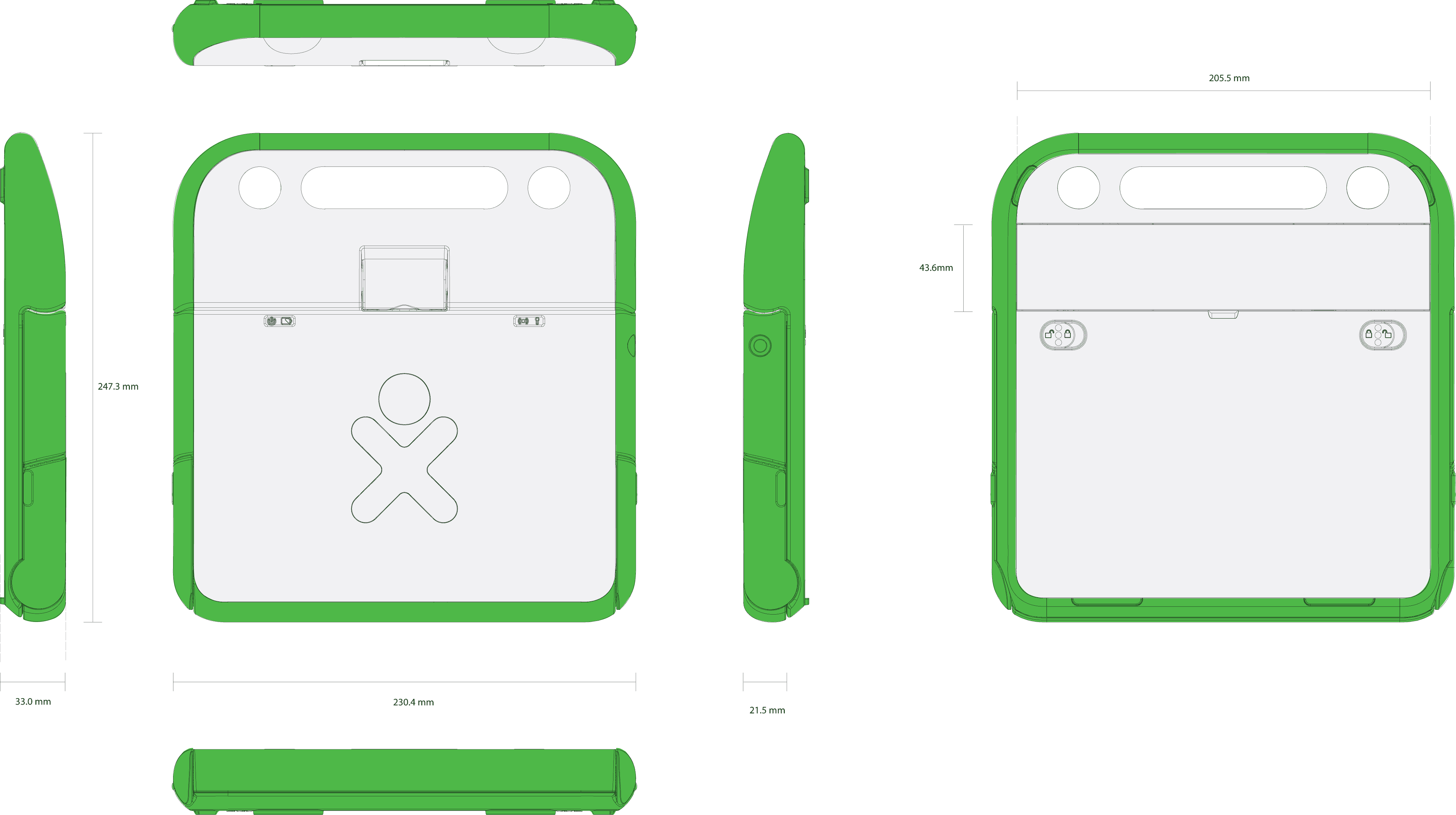 A 10x optimized version of the file "Olpc_XO_dimensions.jpg". Has exact same fidelity / resolution as original. All images of this type (CAD illustrations) should be created as PNG, not JPG!