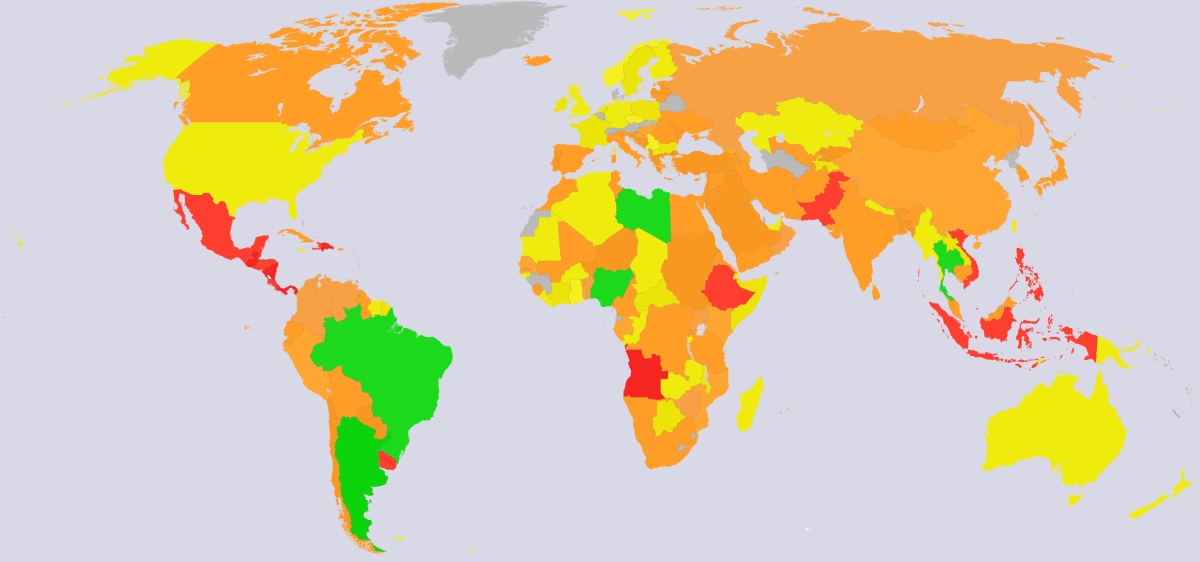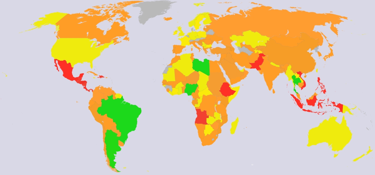 Potential launch countries (green) Potential first-year participants (red) Federal-level discussion (orange) NGO discussion (yellow) No active contact (gray)