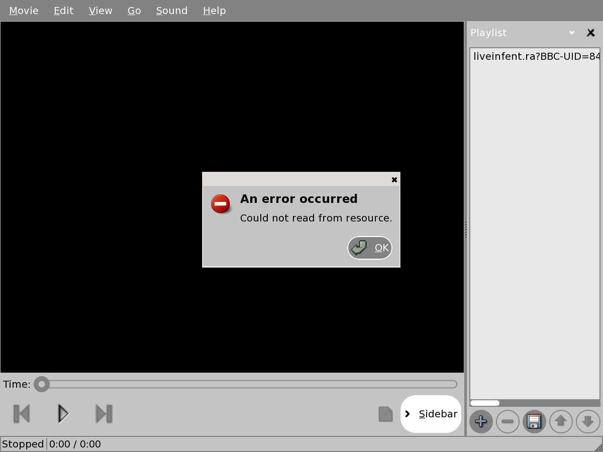 | current | 11:52, 11 January 2008 | Error creating thumbnail: Unable to save thumbnail to destination | 1,200 × 900 (51 KB) | Imported>Tomhannen | Screen shots showing attempt to use Totem to play real streams through Opera |
