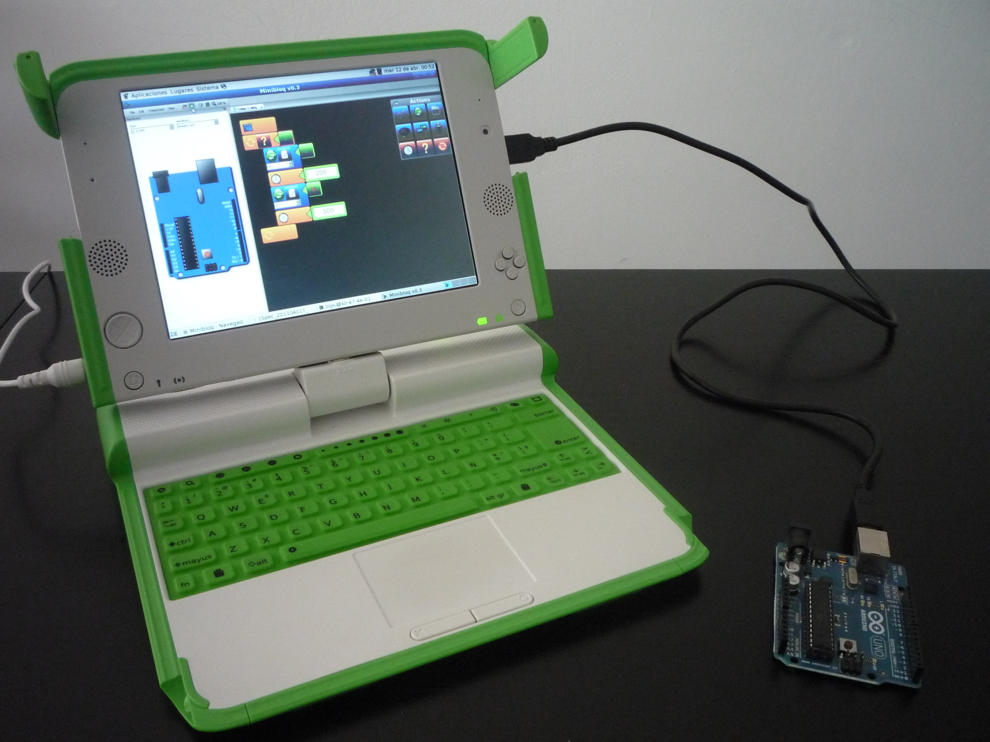 | current | 14:35, 12 April 2011 | 3,264 × 2,448 (2.4 MB) | Imported>Julian.dasilva | Programming an Arduino UNO with Minibloq running on an XO. |