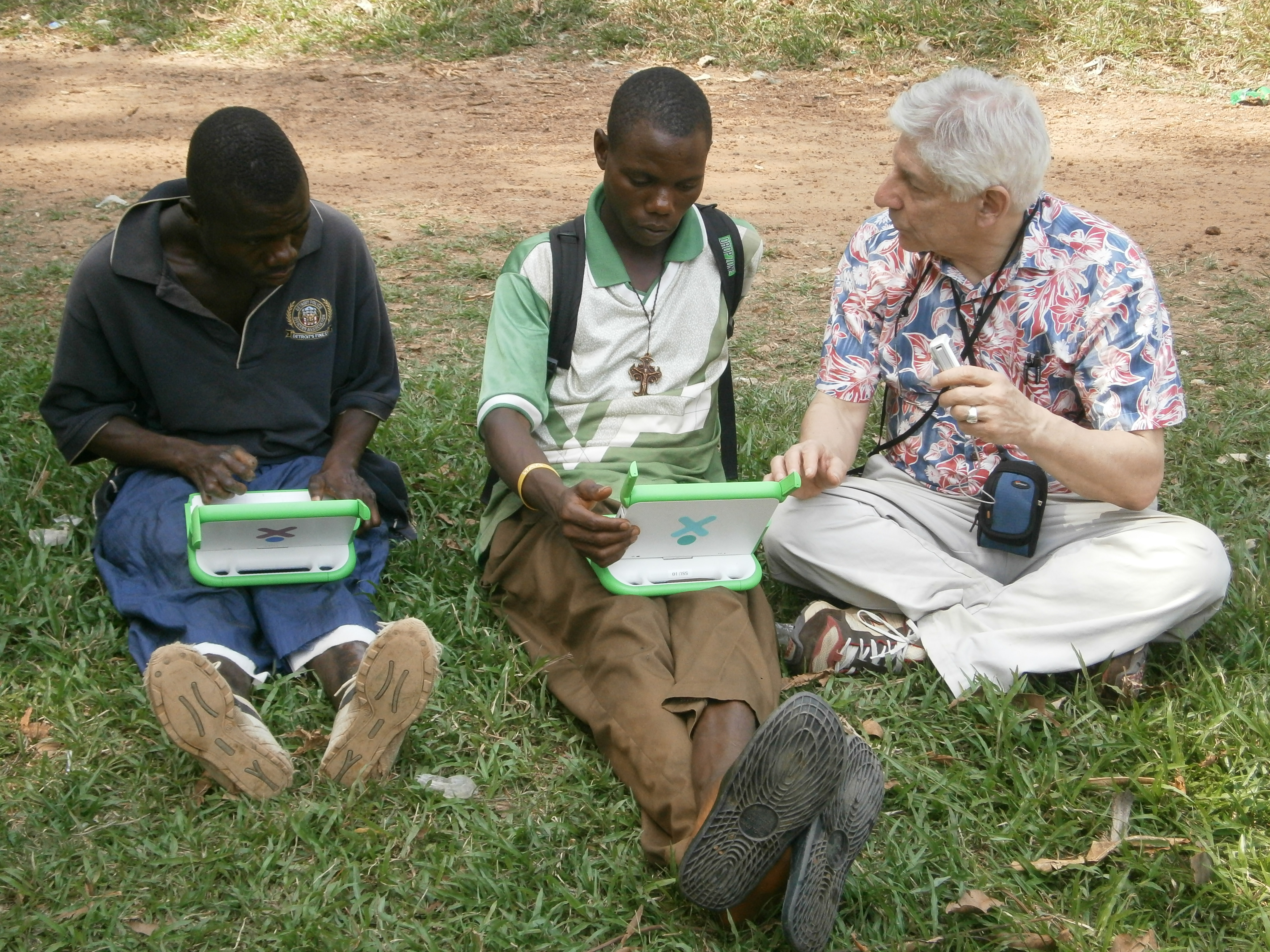 Ganta United Methodist School (GUMS) students learning the XO with faculty member Dr. Shwedel