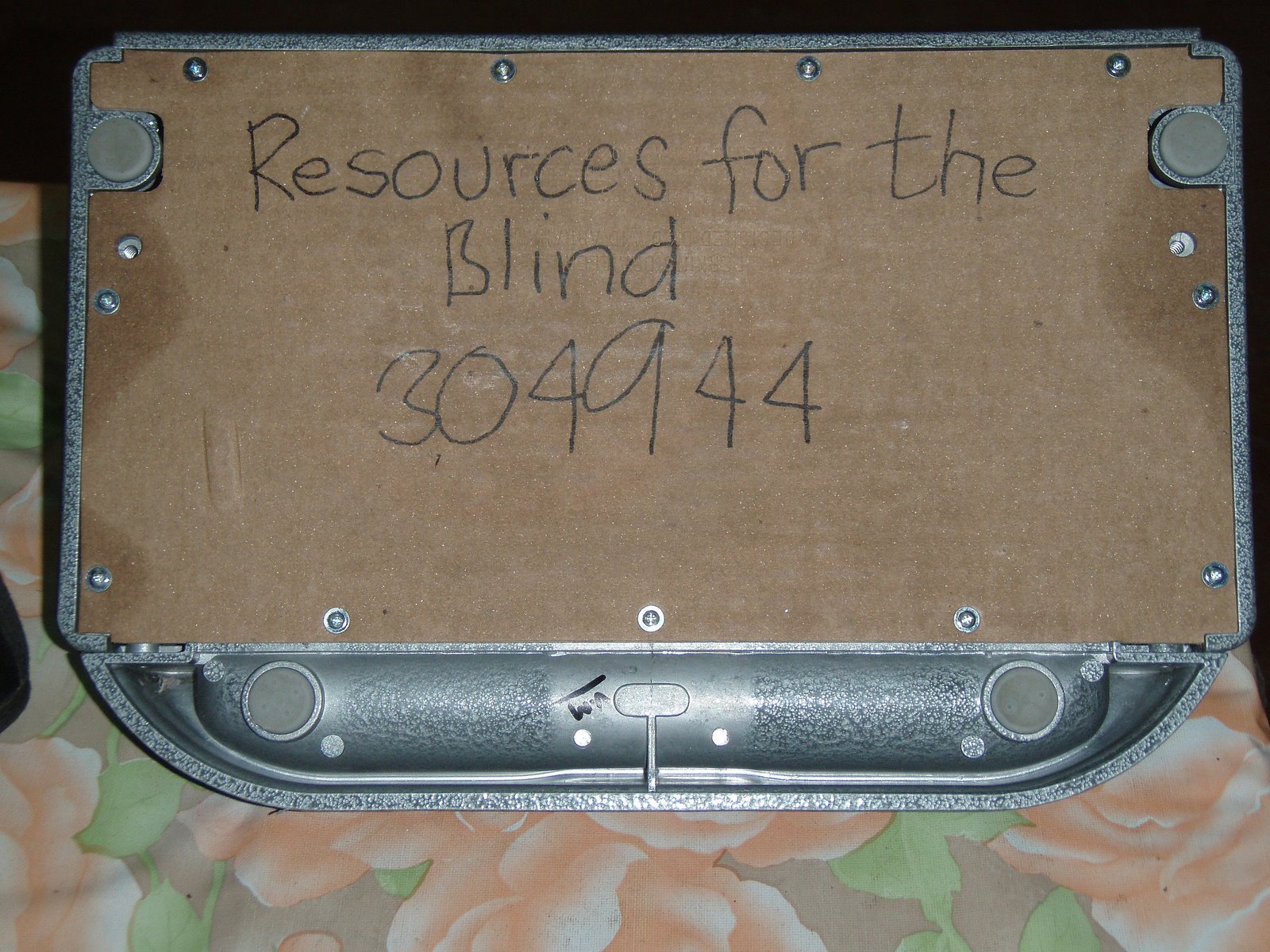 Added to reduce some confusion IRT braille input. showing bottom to prove picture is eligible for Public Domain release