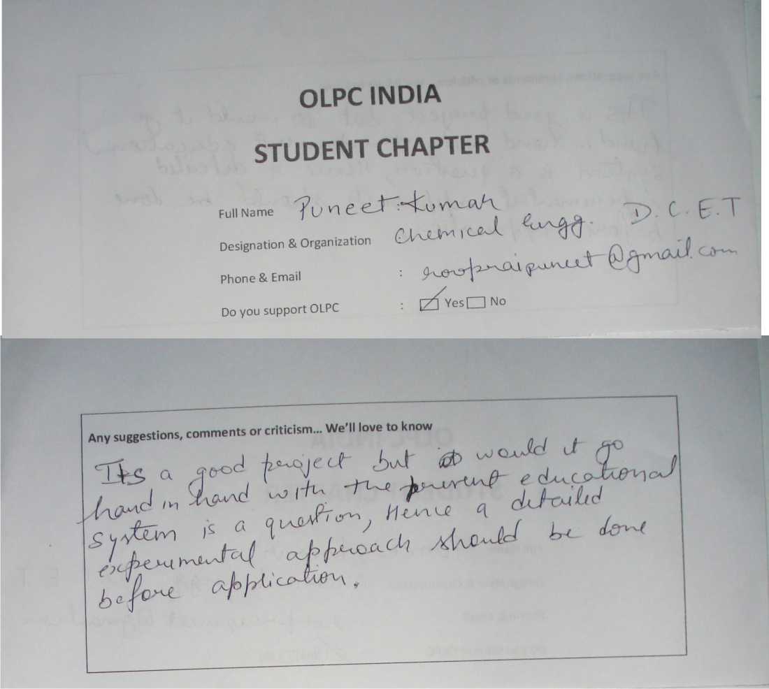Membership form of OLPC India Student Chapter