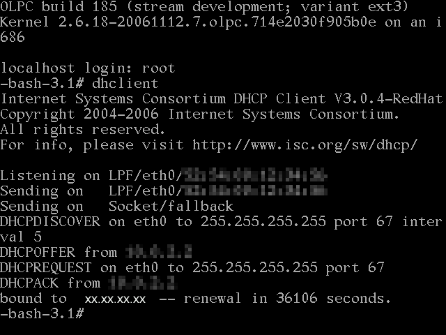 | current | 10:28, 7 December 2006 | Error creating thumbnail: Unable to save thumbnail to destination | 640 × 480 (20 KB) | Imported>Tomhannen | Screen shot of successfully running dhclient command in QEmu |